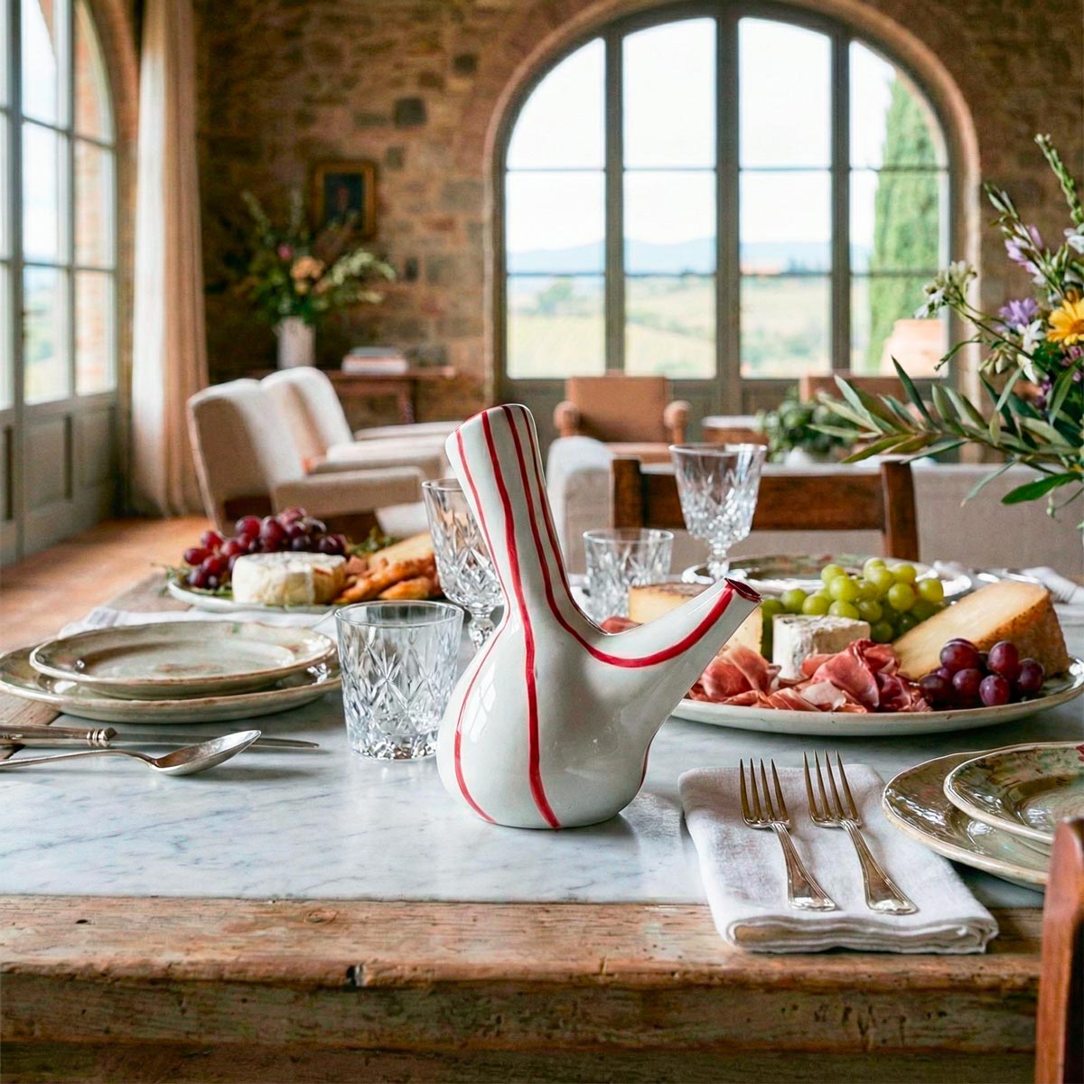 Porta in tavola il calore e lo stile della tradizione mediterranea. L'Oliera Valenciana Aceteira non è un semplice utensile da cucina, ma un pezzo di artigianato che celebra il rito quotidiano del condire, trasformandolo in un gesto di eleganza.