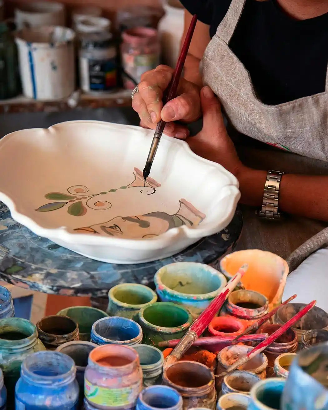 My majolica is born from the union of the watercolor imagination of a child who never grew up and the fidelity to a thousand-year-old island tradition. I'm Sicilian as Sicilian as can be, from my facial features to my ancestral attachment to my homeland.