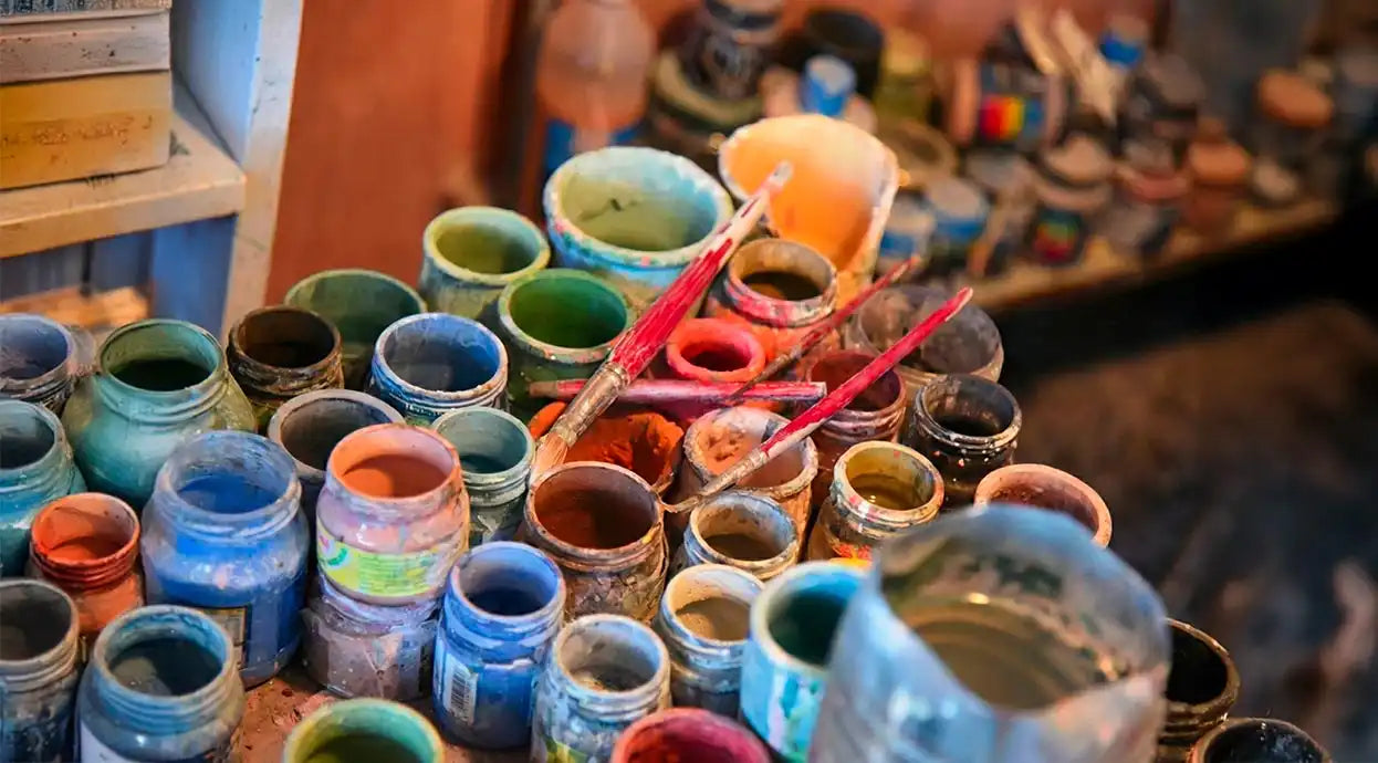 The colors of Sicily ready to come to life in the artist's hands.